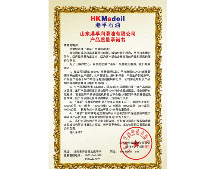 港孚產(chǎn)品質(zhì)量承諾書(shū) |
